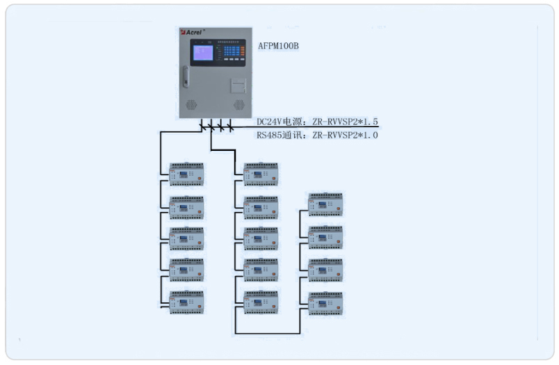本項目承接其消防設(shè)備電源監(jiān)控系統(tǒng),通過對其樓層分布的20塊AFPM3-2AV型消防電源監(jiān)控模塊的數(shù)據(jù)采集,完成在AFPM100主機的電壓狀態(tài)數(shù)據(jù)的實時顯示、報警。