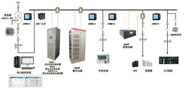 ANAPF系列有源電力濾波器通過電流互感器采集系統(tǒng)諧波電流,經(jīng)控制器快速計(jì)算并提取各次諧波電流的含量,產(chǎn)生諧波電流指令,通過功率執(zhí)行器件產(chǎn)生與諧波電流幅值相等方向相反的補(bǔ)償電流,并注入電力系統(tǒng)中,從而...