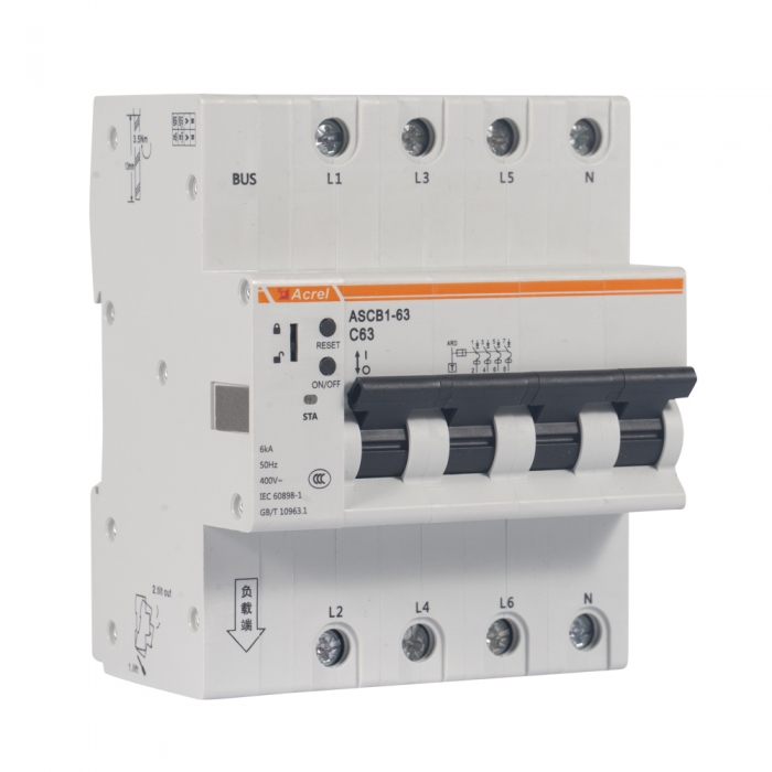安科瑞ASCB1系列智慧物聯遠程控制斷路器基于人工智能技術,深度學習智能決策,數據采集分析、實時遠程控制、大數據可視化呈現,大幅度提高觸電時生命安全保障,實現終端智慧用電服務與節能管理。主要應用于戶內建筑物及類似場所的工業、商業、 民用建筑及基礎設施等領域低壓終端配電網絡。智能微型斷路器配合智能網關使用,對用電線路的關鍵電氣 參數,如電壓、電流、功率、溫度、漏電、能耗等進行實時監測,具有遠程操控、異常預警、事故跳閘告警、電能計量統計、故障定位等功能。有多種電流規格,1-4極數可選。