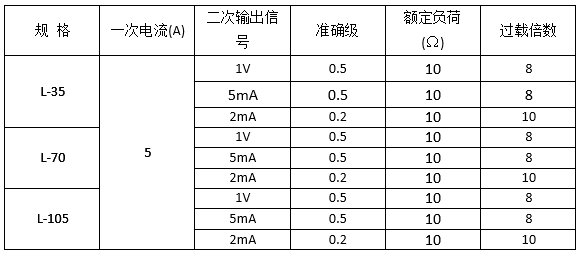 技術(shù)要求:輸入電流10A;二次輸出信號5mA;準(zhǔn)確級0.5級;額定負(fù)荷:0.2VA;過載倍數(shù)8。